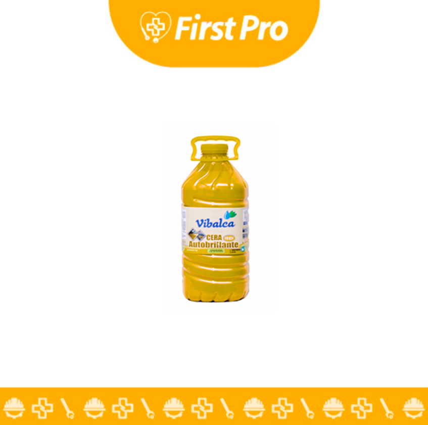 Cera Acrílica Autobrillante Amarilla VIBALCA Galón (4L). Cera líquida con polímeros para brillo instantáneo en pisos. Antideslizante, selladora y perfecta para realzar el color en suelos claros.